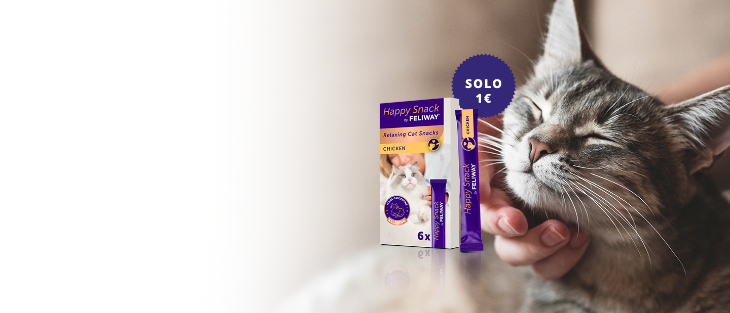 Una (1) confezione di Happy Snack 6 Sticks al gusto pollo al costo di 1€ con una spesa superiore a € 49,99 su qualsiasi altro prodotto su feliway.it - Offerta valida dal 16 febbraio al 09 marzo 2026. Non sostituibile con denaro contante. L'offerta è soggetta alla disponibilità di magazzino e può essere ritirata in qualsiasi momento. Non cumulabile con altri sconti o promozioni. Lo sconto viene applicato automaticamente quando i prodotti idonei vengono aggiunti al carrello. Valido solo una volta per cliente su un singolo acquisto.