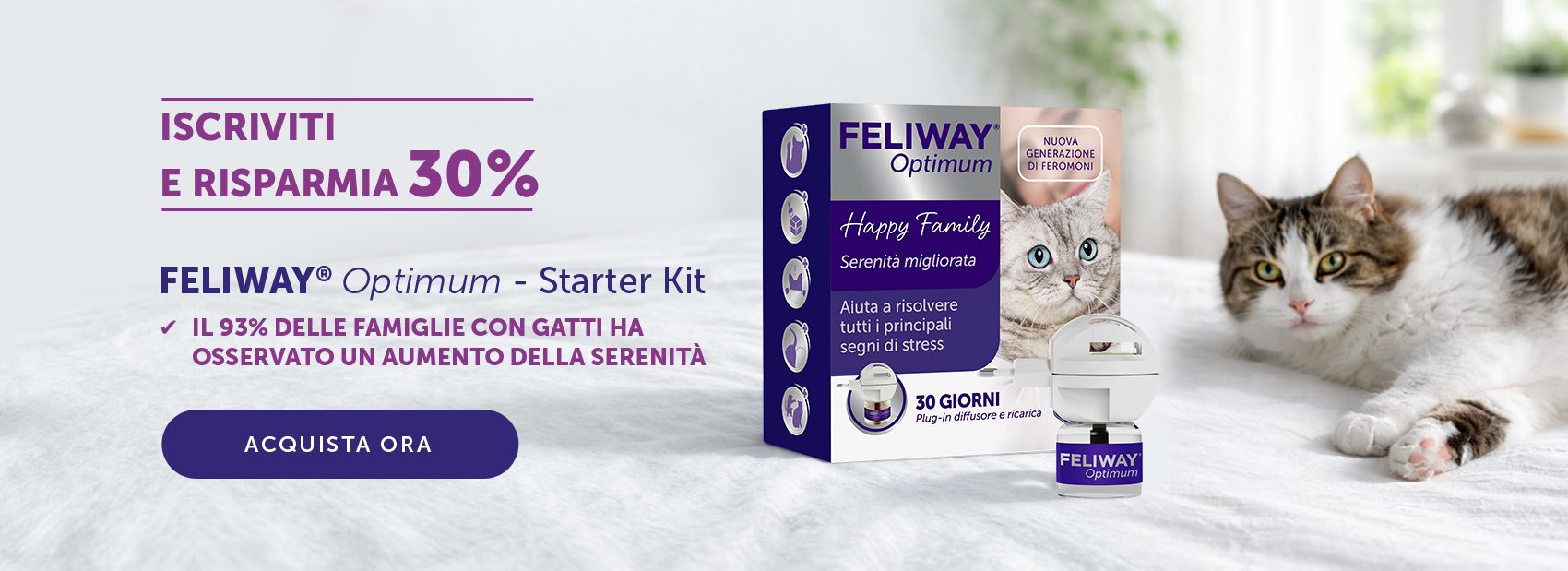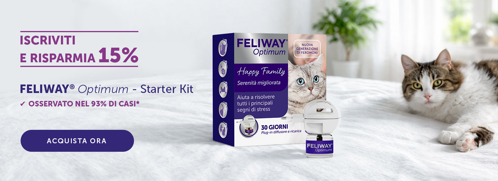 FELIWAY Optimum Fornisce messaggi di serenità che aiuta i nostri gatti a superare gli stress della vita moderna. Portando serenità nella vostra casa